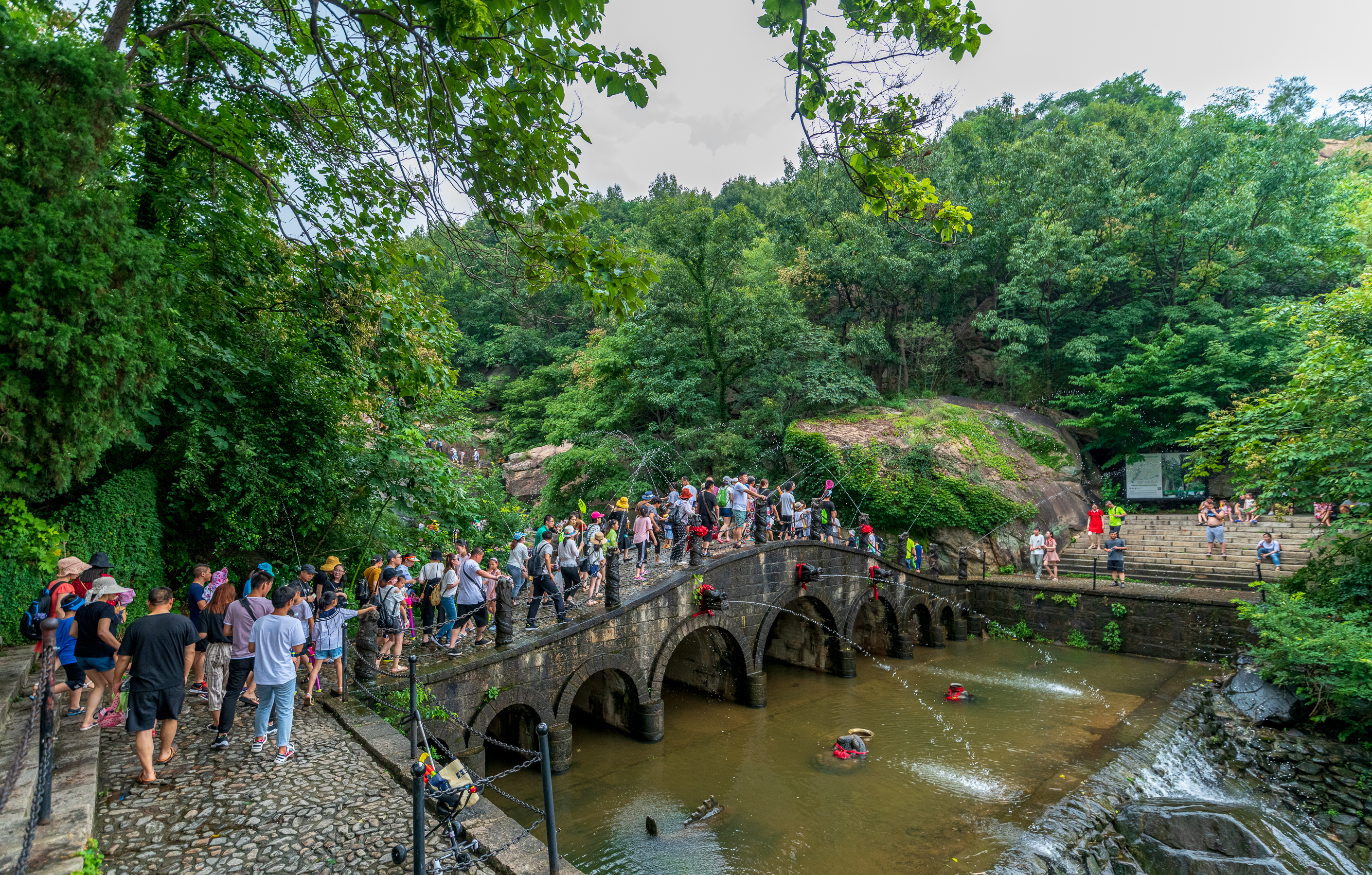 在景區(qū)老龍?zhí)叮?ldquo;吶喊噴泉”邊擠滿了駐足的游客。游客只要用力地吶喊,眼前就會(huì)出現(xiàn)一柱撥地而起的壯觀噴泉,喊得越大聲,噴泉噴的就會(huì)越高,讓人們仿佛在頃刻之間有了一股神力。在即將到來(lái)的“七夕”情人節(jié),景區(qū)還加推限量的免費(fèi)體驗(yàn),讓游客在山海之間,對(duì)心愛(ài)的人大聲喊出自己的愛(ài)。