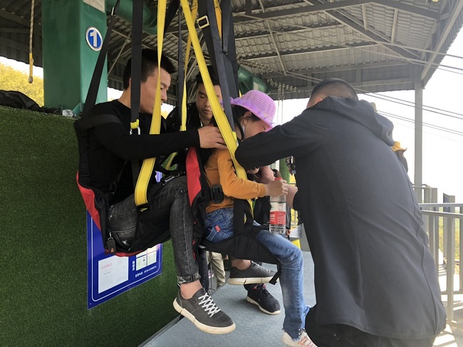 “五一”小長假期間滑索項目人氣爆棚 員工堅守崗位
