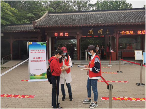 活動(dòng)中,春風(fēng)志愿服務(wù)隊(duì)的志愿者們不怕臟不怕累,手持夾拾器對(duì)綠化帶內(nèi)衛(wèi)生死角進(jìn)行清理,將散落在漁灣景區(qū)的垃圾進(jìn)行清掃,并向游玩游客宣傳創(chuàng)文、創(chuàng)衛(wèi)精神,營造了良好的創(chuàng)文、創(chuàng)衛(wèi)氛圍。