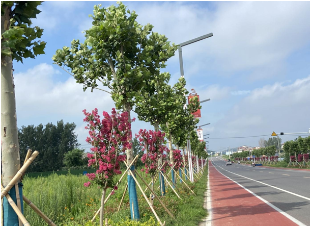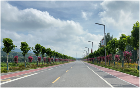 環(huán)云臺山大道總長共計13公里,道路連通丹霞、前關(guān)、后關(guān)、凌州、山東、東磊、漁灣、朱麻8個自然村落。潤云公司于2021年3月份打造道路兩側(cè)綠化美化工程,栽植法桐、紫薇(國旗紅)、金森女貞、紅葉石楠,采用高中低錯落有致的設(shè)計方法,形成錯落有致、層次豐富的美麗街景。