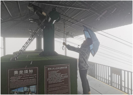 潤景公司制定防臺防汛值班表,值班人員對滑索項目、漂流項目進行巡邏值班,檢查水庫汛線水位、河道水位、上下水庫、室外設備、防雨棚等,組織員工對河道、池塘進行清理,并檢查是否有滑坡、泥石流等隱患。