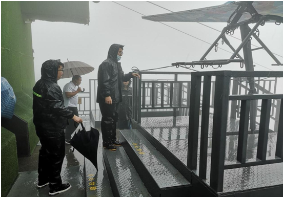 為全面做好防臺工作,確保項目現場安全穩(wěn)定,集團公司副總于凱帶隊檢查漂流項目、滑索項目防臺措施情況,重點查看了應急物資是否配備齊全、吊具是否加固、電源是否關閉,特別強調漂流下站水庫要做好及時排水,密切關注汛線水位,并做好人員值班值守,明確職責,嚴陣以待。