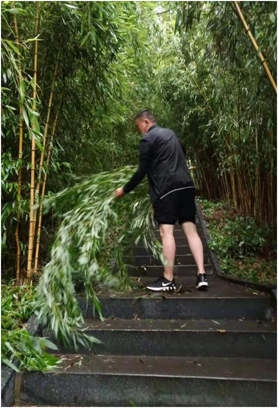 7月29日上午,潤景公司分管副總帶隊檢查滑索項目、漂流項目現場臺風過后受損情況,經檢查,目前無受損情況,吊具完好無破損,漂流項目下站水庫未過汛線水位,漂流房屋無坍塌情況等,并及時安排工作人員對游步道周邊被吹倒的竹子、樹枝進行修剪。