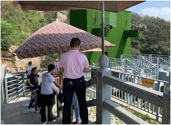 假日期間,每日對員工進行體溫檢測,測量正常后方可上崗,并要求上班期間全程佩戴口罩;安排專人,每天定期對滑索項目售票房、游步道、游客等候處等區(qū)域進行全面清潔消殺;排隊區(qū)域設置一米間隔線,安排引導者提醒游客保持合理距離,要求檢票人員在游客規(guī)范佩戴好口罩后方可放行,在游客等候區(qū)域,搭建了13頂遮陽傘,為游客“送清涼”,各項舉措確保游客平安歡樂度過中秋小長假。
