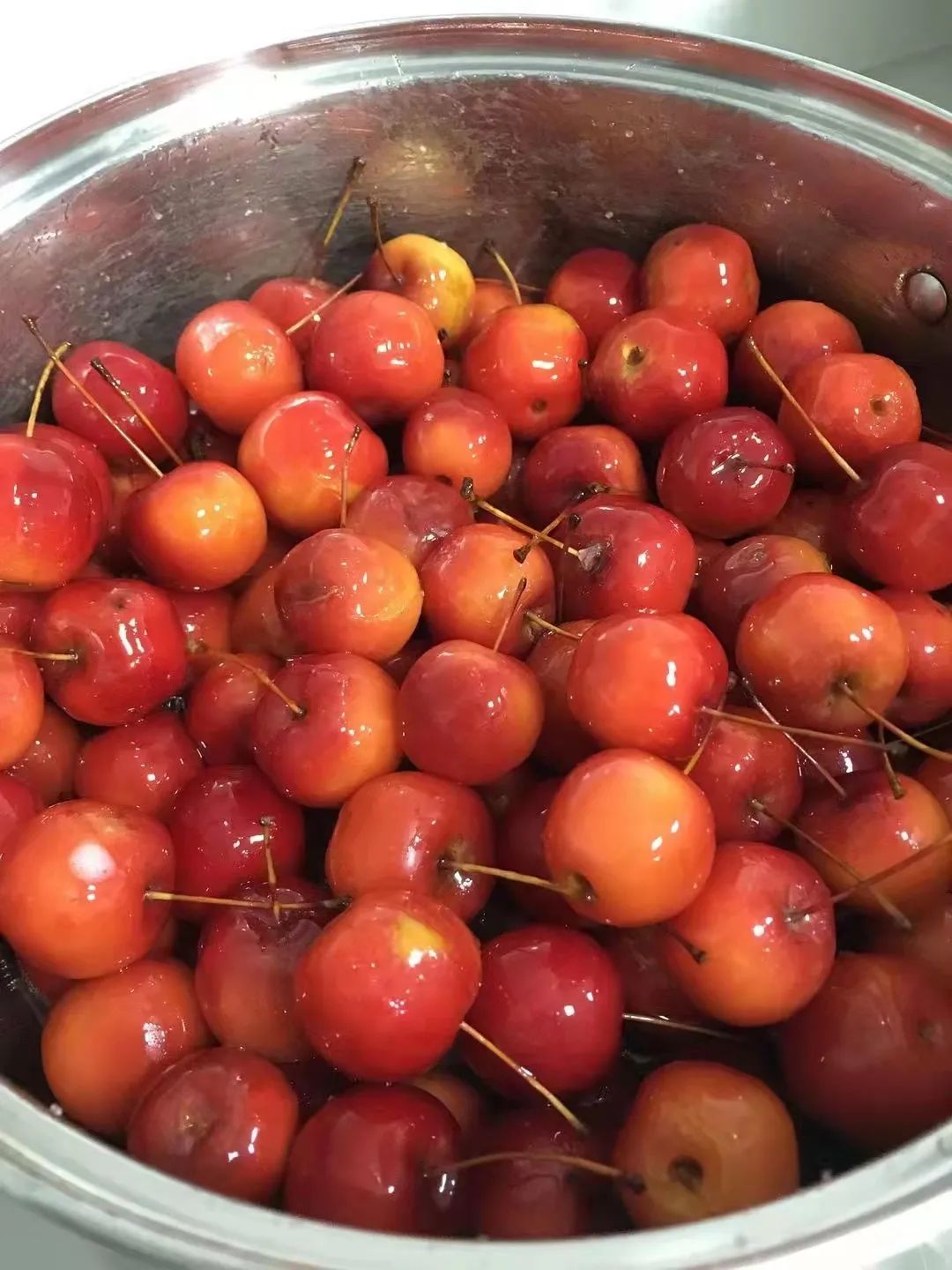 海棠果,又名楸子、海紅、紅海棠果、柰子,因?yàn)楣麑?shí)上有八道棱狀突起,又叫“八棱海棠”、“大八棱”,果皮色澤鮮紅奪目,果肉黃白色,果香馥郁,鮮食酸甜香脆,含有糖類、多種維生素以及有機(jī)酸,營(yíng)養(yǎng)價(jià)值可與獼猴桃媲美,以“百益之果”著稱,有生津止渴、健脾止瀉的功效??芍苯邮秤茫芍谱髅垧T,也可制作果醬。
