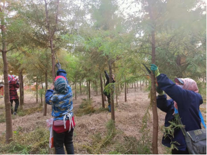 此次主要是對前關(guān)村苗圃地200.5畝、后關(guān)村苗圃地250.4畝、丹霞村苗圃地562.5畝、西山村苗圃地148.09畝,共960.99畝苗木進(jìn)行修剪,在修剪作業(yè)時,綠化工人將病蟲枝、干枯枝、斷枝、下垂枝、干生枝以及與電線交叉有安全隱患等枝條全部剪除,留下健壯的主側(cè)枝,并及時清理枝條落葉,保證地面整潔。