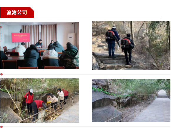 12月14日上午,漁灣公司組織全體員工召開冬至森林防火會議,防患于未“燃”。會上公司負(fù)責(zé)人傳達了文旅集團防火部署會議精神,對漁灣景區(qū)冬至防火工作任務(wù)進行了再安排、再強調(diào)、再部署。會后,漁灣公司工作人員第一時間響應(yīng)會議精神,紛紛走進景區(qū),對林下可燃物、游步道兩側(cè)雜樹、枯枝落葉、雜草等進行了清理,共清理了10余袋,最大限度地消除森林火災(zāi)隱患。