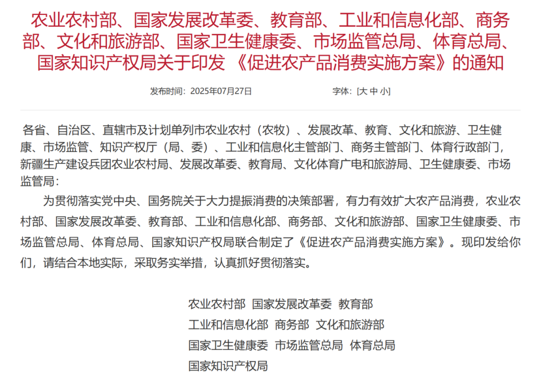 為深入貫徹中共中央辦公廳、國務(wù)院辦公廳印發(fā)的《提振消費(fèi)專項(xiàng)行動方案》部署要求,有力有效擴(kuò)大農(nóng)產(chǎn)品消費(fèi),優(yōu)化供給端、創(chuàng)新流通端、激活市場端,釋放多樣化、品質(zhì)化、差異化消費(fèi)潛力,引領(lǐng)供需結(jié)構(gòu)升級,現(xiàn)就促進(jìn)農(nóng)產(chǎn)品消費(fèi)制定本方案。