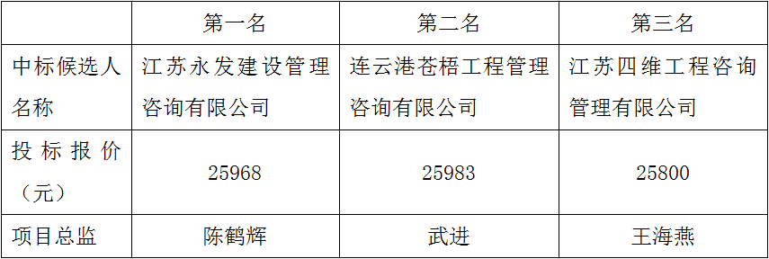 2、擬確定中標(biāo)人:江蘇永發(fā)建設(shè)管理咨詢(xún)有限公司
